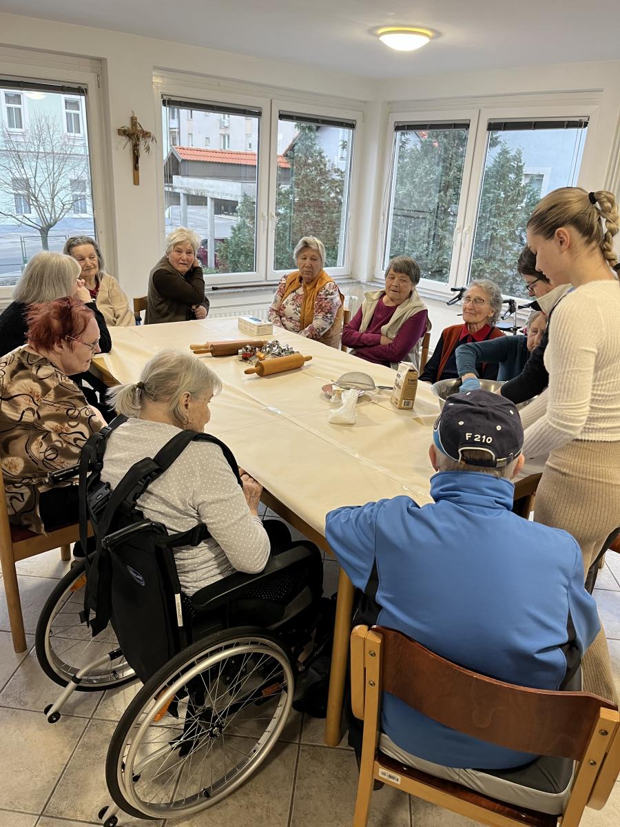 Naši mladi zaposleni so v svojem prostem času poskrbeli za organizacijo dogodka praznične peke piškotov. Tako so svojim stanovalcem polepšali drugo adventno nedeljo. Skupaj z njimi so skrbno zamesili testo in oblikovali praznične maslene piškote. Ob prijetnem druženju so si izmenjevali izkušnje pri pripravi piškotov ter obujali spomine na praznični čas.