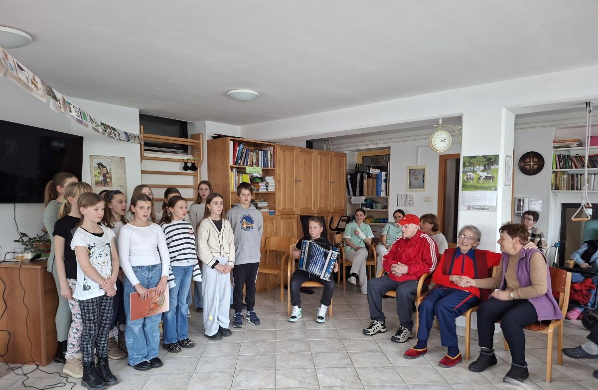 V duhu praznovanja materinskega dne, je skupina učencev osnovne šole Antona Globočnika iz Postojne skupaj z učiteljicami za nas pripravila nastop. Petje petošolk, je popestril učenec z igranjem na harmoniko, prav tako so dogajanje popestrili s skrbno izbranimi recitacijami na temo “mama”. Prijetno vzdušje smo nadaljevali s skupnim prepevanjem. Osnovnošolci v naš zavod vsakokrat prinesejo mladostno sproščenost, ki nam vliva in daje voljo za naprej.