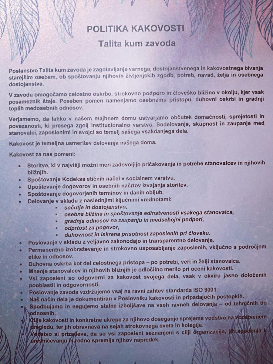 Sprejem v Talita kum zavod
